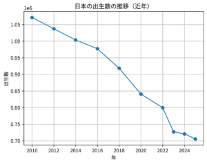 2025年に産まれた外国人を含む子どもの数は70万5809人となり、統計を始めた1899年以降最小を更新しています。(日本人だけの出生数も68万人より減る見通しです。)