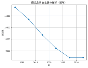 前述の通り、鹿児島県の2025年の出生数は9209人。